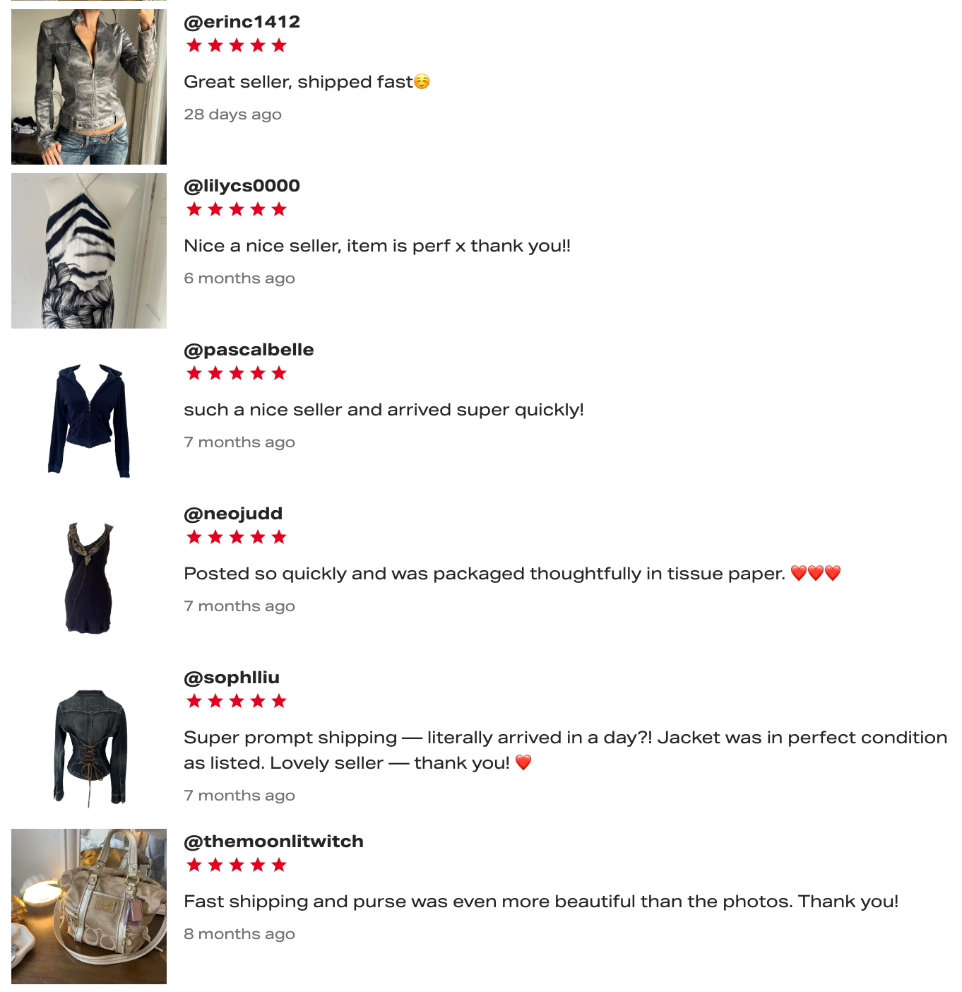 I’ve been selling on Depop for several years and have built my store on honest descriptions, careful sourcing, and fast, secure shipping. Every item is individually selected, quality-checked, and photographed in-house (literally in my house).